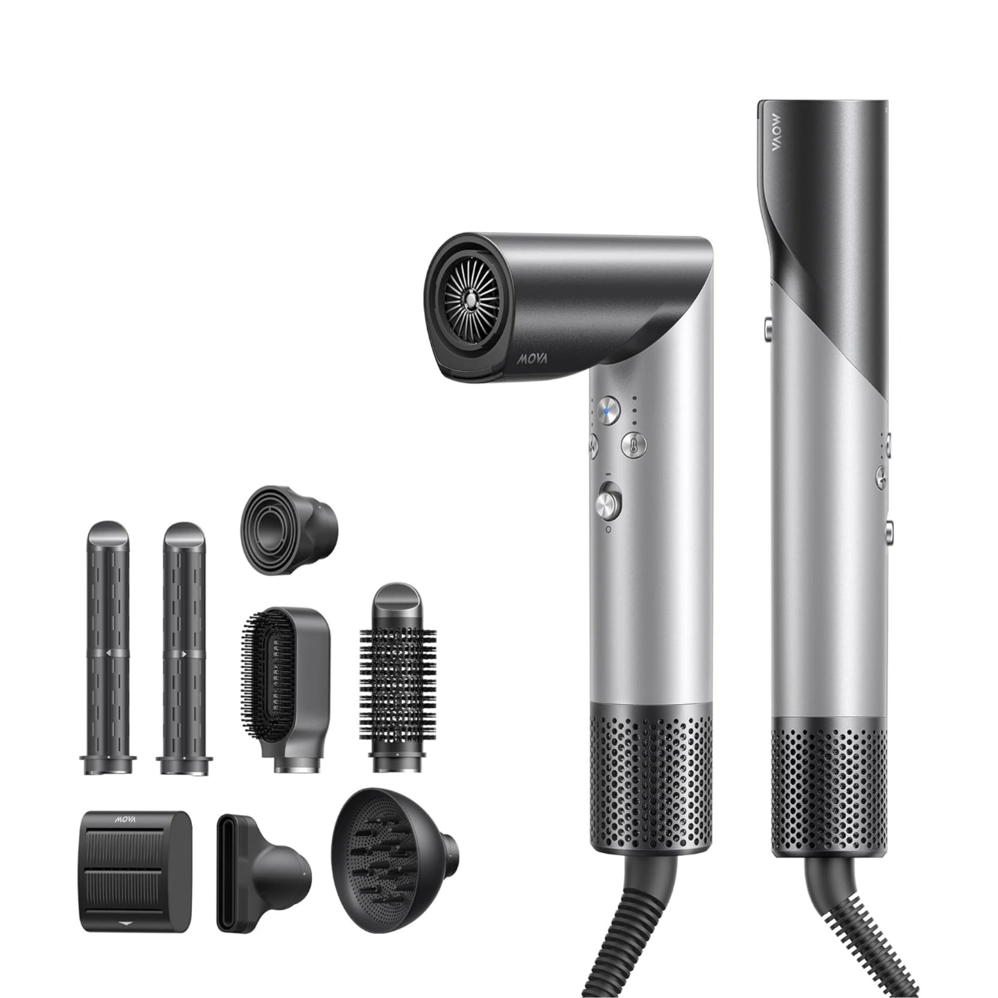 The MOVA Master 10 is an all-in-one high-speed air styler that dries, smooths, curls, volumizes, and shapes with salon-grade results. Smart Nozzle Recognition auto-sets the best mode for each attachment, while Coanda-inspired airflow creates bouncy curls with reduced heat damage. A Hair Essence Heating Comb helps evenly warm and infuse care, and the 110,000 RPM motor delivers powerful, fast drying. Lightweight and easy to handle, Master 10 simplifies everyday styling for every hair type.